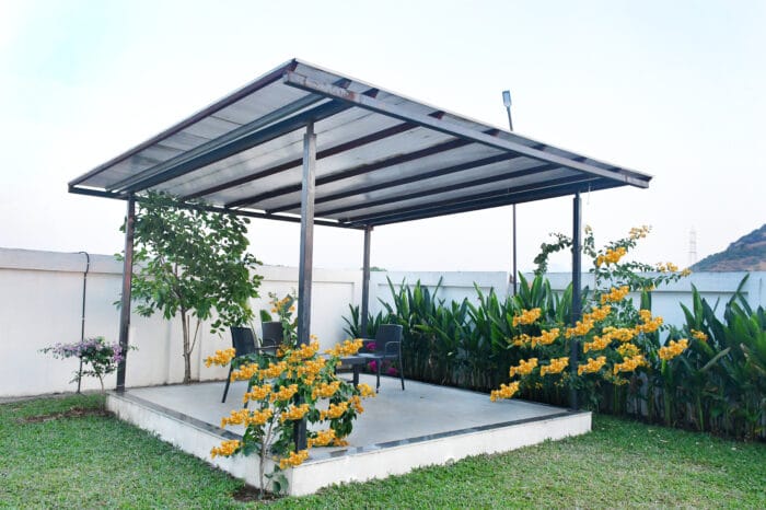 Spend peaceful moments outdoors with comfortable seating surrounded by fresh air and greenery.